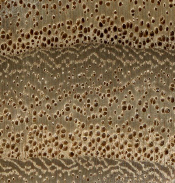 Цвет сердцевины может колебаться от нейтрального серо-бежевого до богатого золотисто-коричневого: почти вся состоит из сердцевины. Узкая краевина бледно-серая. Общий вид некоторым образом напоминает железистую древесину.